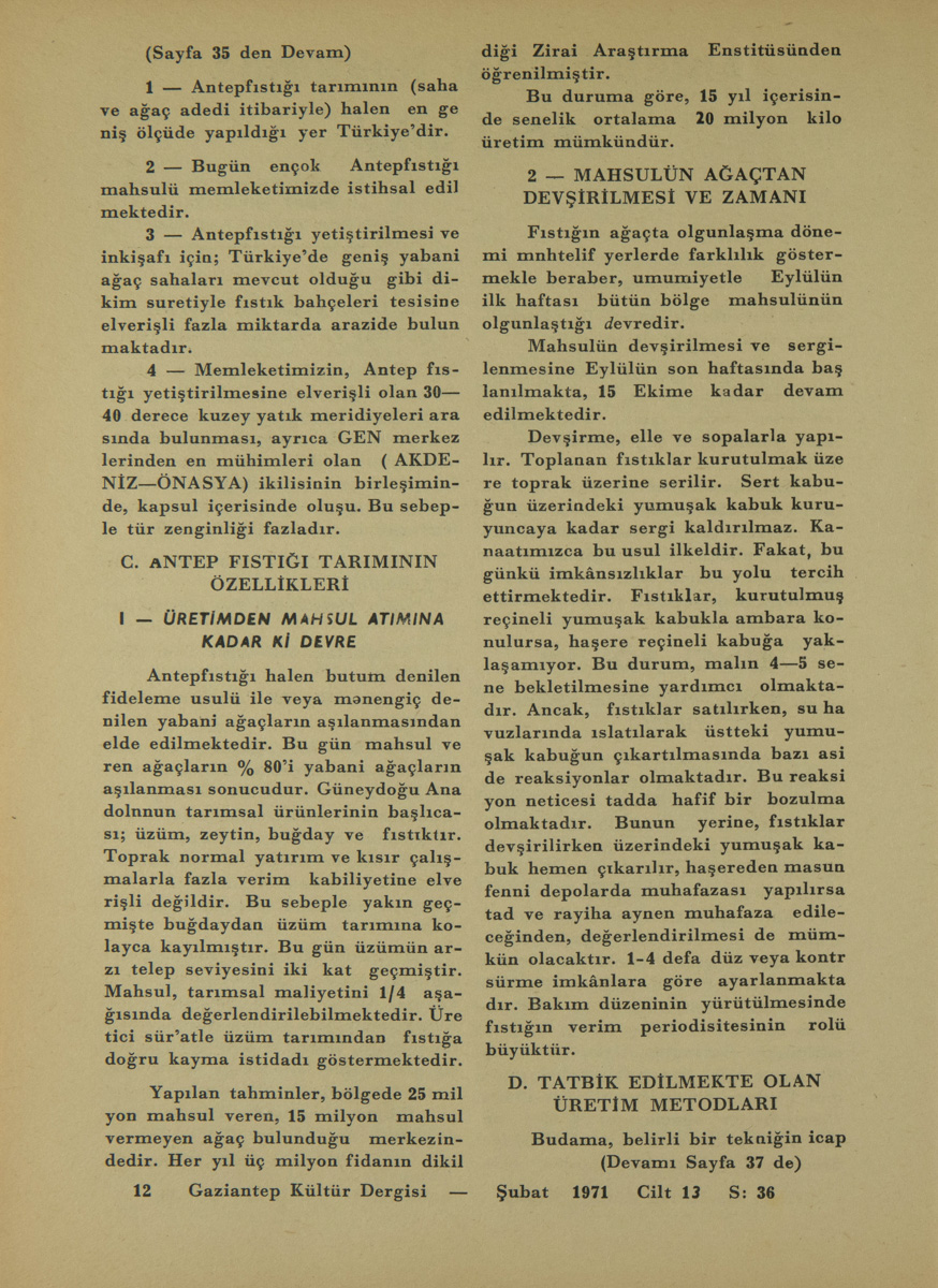 3- Antepfıstığı yetiştirilmesi ve inkişafı için; Türkiye’de geniş yabani ağaç sahaları mevcut olduğu gibi dikim suretiyle fıstık bahçeleri tesisine elverişli fazla miktarda arazide bulunmaktadır.