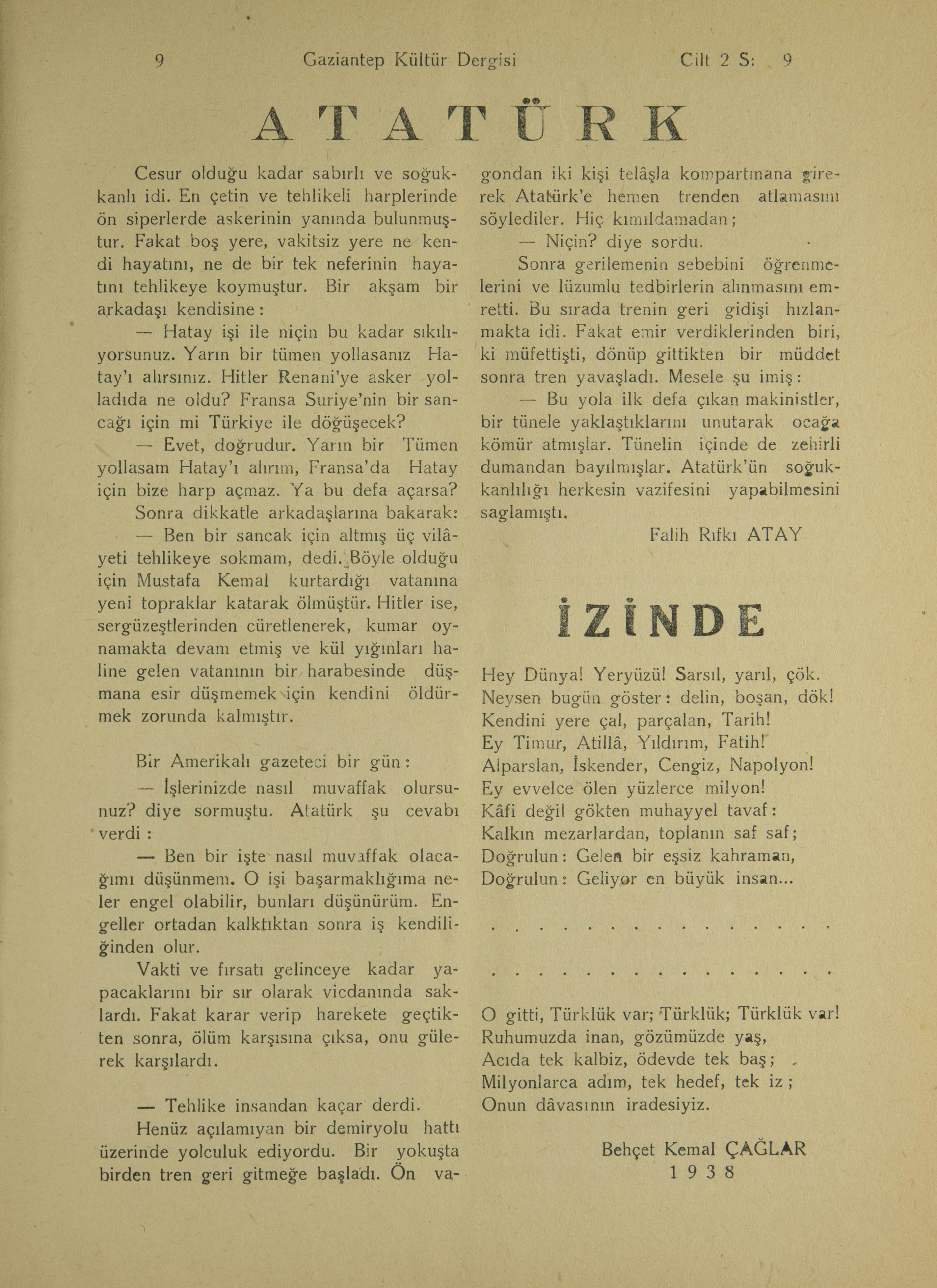— Tehlike insandan kaçar derdi. Henüz açılamıyan bir demiryolu hattı üzerinde yolculuk ediyordu. Bir yokuşta birden tren geri gitmeğe başladı. Ön vagondan iki kişi telâşla kompartmana girerek Atatürk’e hemen trenden atlamasını söylediler. Hiç kımıldamadan;