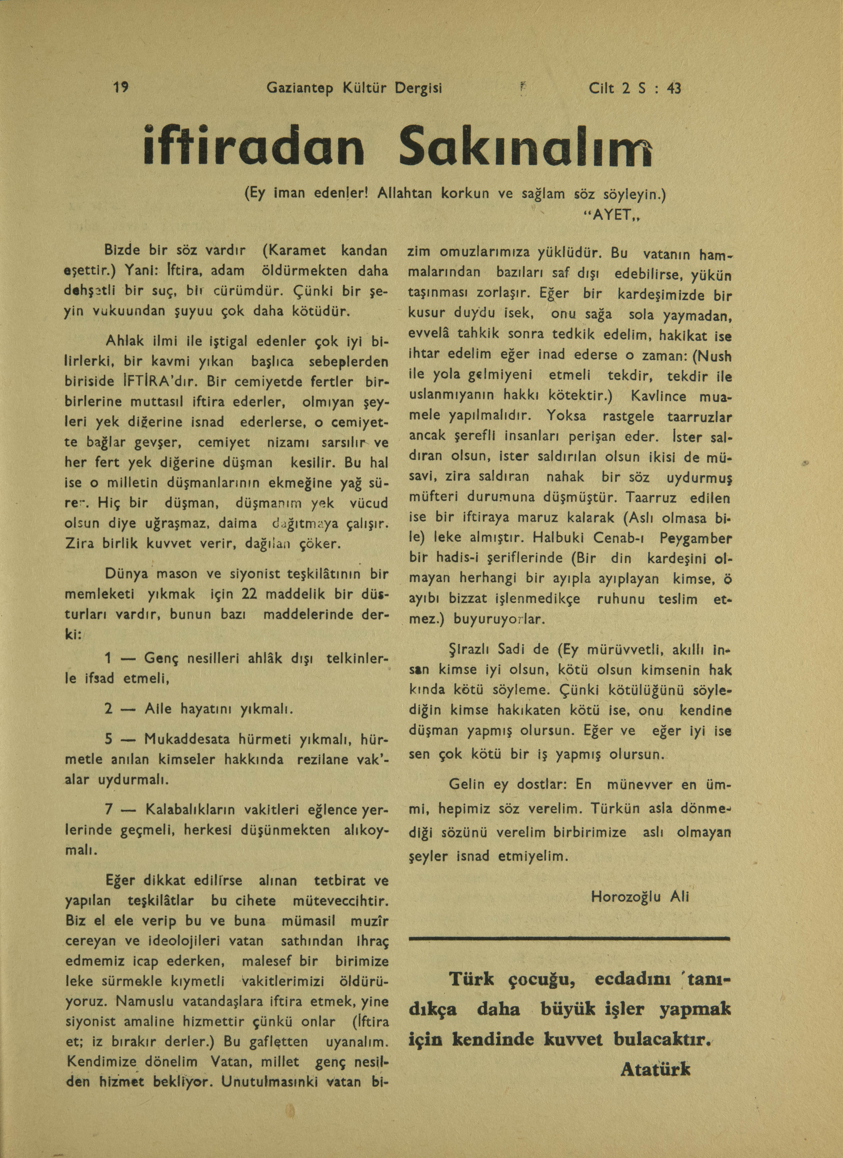 ATATÜRK, M. " ATATÜRK". Gaziantep Kültür Dergisi. ( 1958)