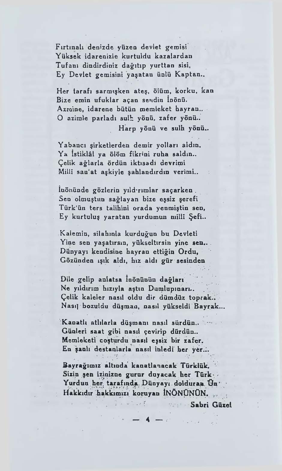 Bize emin ufuklar açan sendin İnönü.