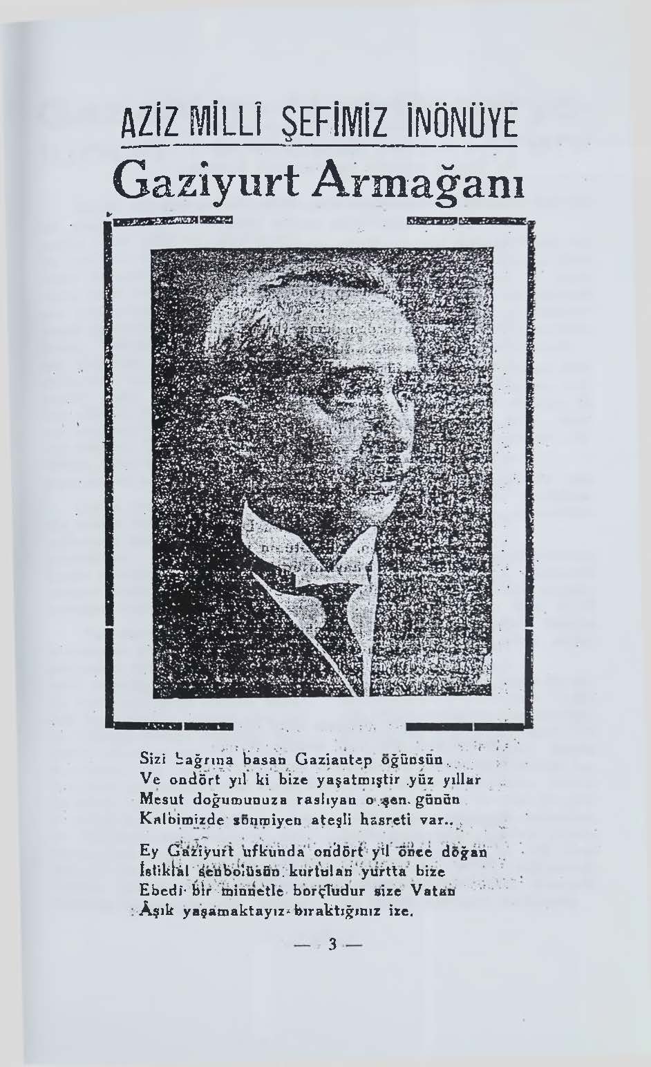 Ey kurtuluş yaratan yurdumun milli şefi…