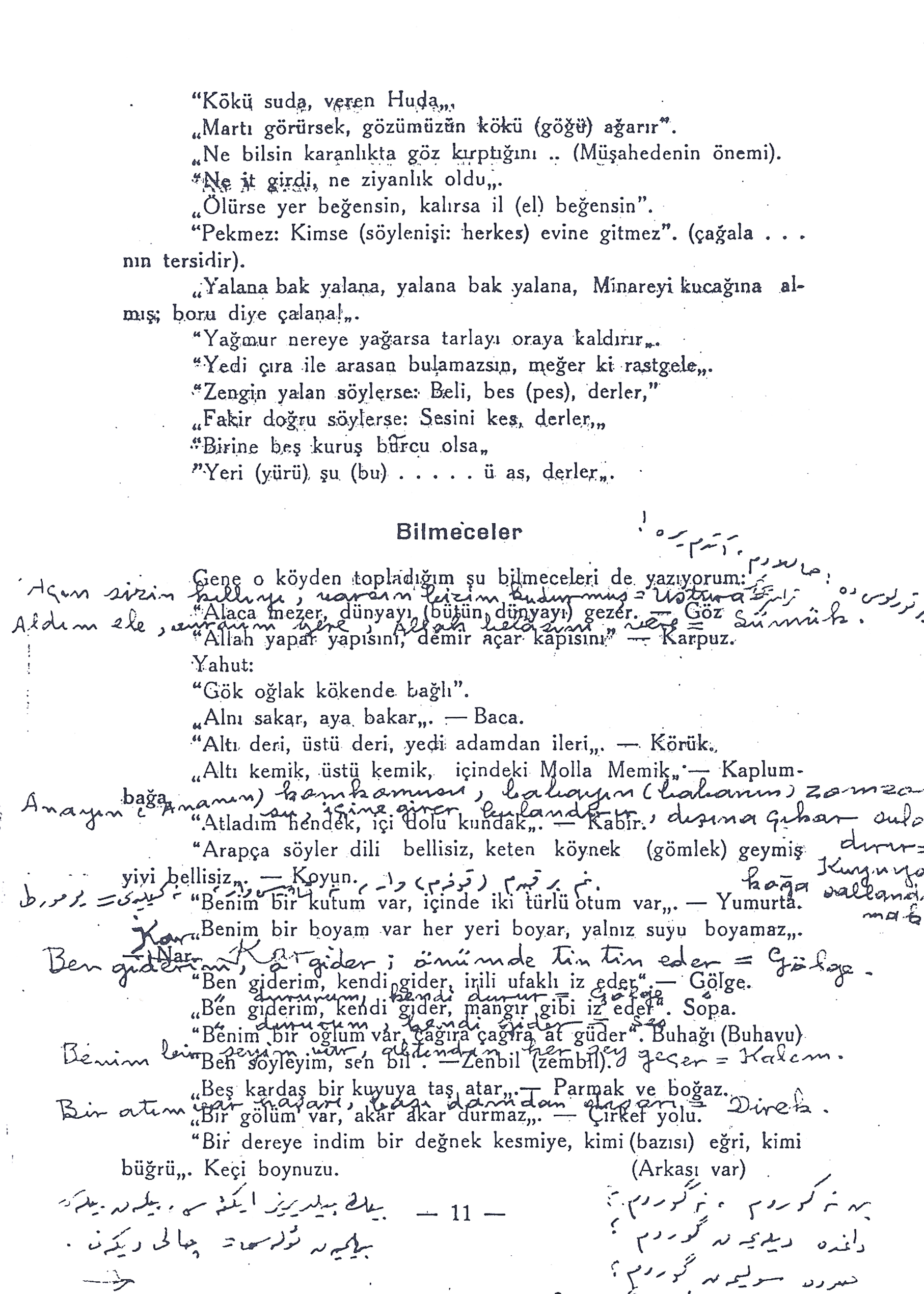 Gene o köyden topladığım şu bilmeceleri de yazıyorum:
