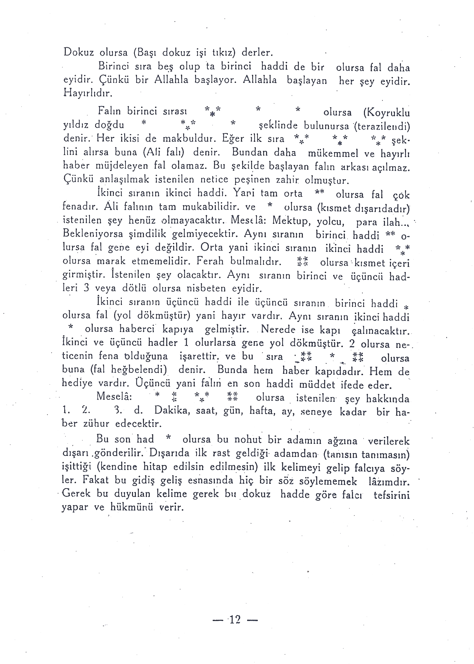 Açılmış bir falın birinci sırası daima ya beş yahut dokuz olur.