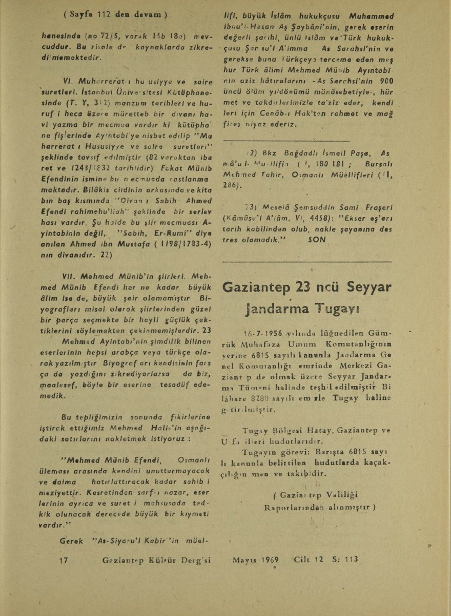 (Gaziantep Valiliği Raporlarından alınmıştır.)