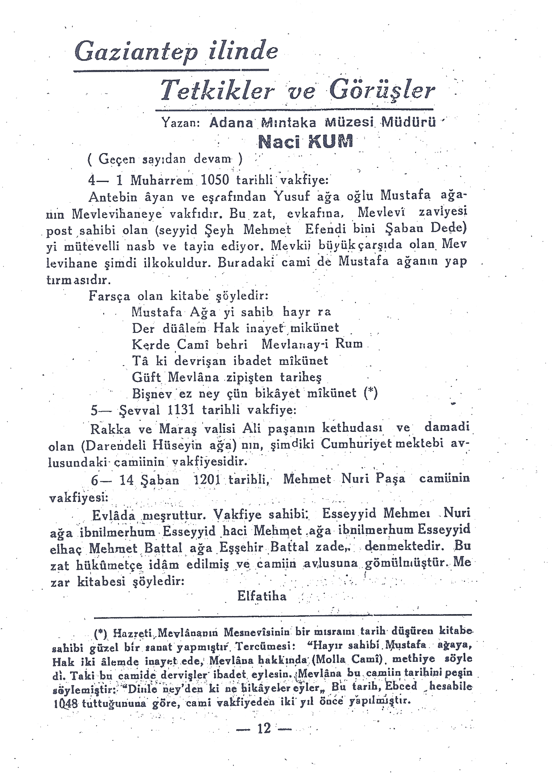 Yazan: Adana Mıntaka Müzesi Müdürü