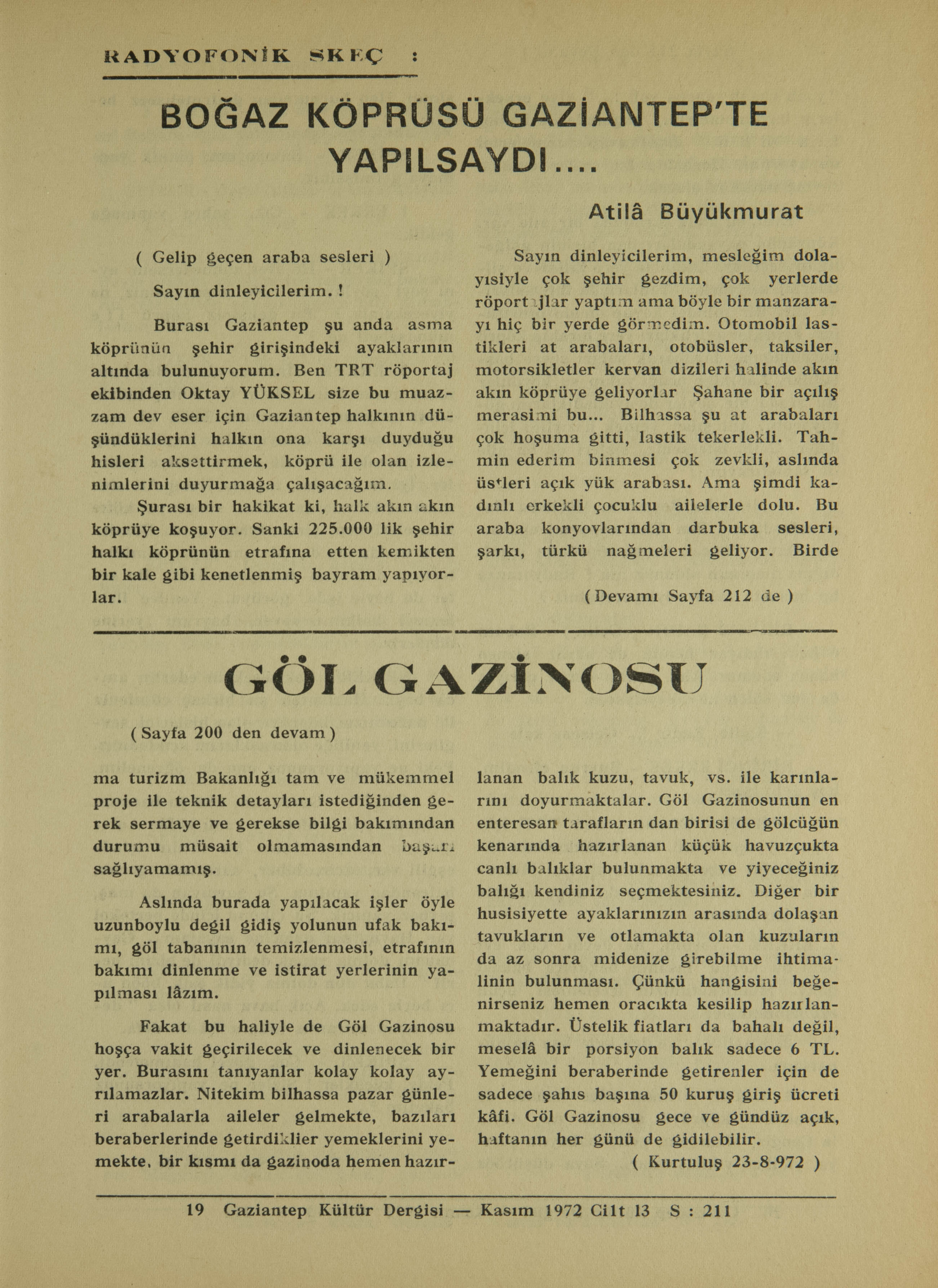 Sayın misafirlerim, benim asıl davam o deel. Biraz evvel dööş ettemiz oolannara eyle bi sinirlenmişdim ki, artık yüzden bişey edemeyk, gözlerimiznen birbirimize haymlık ediydik. Şimdiki biz guru guru pendir ekmek yiyp boynumuzu bükersek o olanlara keyf vermiş olurduk. Ne münasebet, efendim? Neen biz o adar gözü küllümüyk kine? Oncasına Allah yokloonu gösdermesin pendir ekmek kimi varmı kine dünyada, amma bi defa o eşşoleşşeklere huylanmışdım. Hemin, aslı esasında, Anteplioolu anasından doğma aşçıdır. En ehven malzemeynen en nezzetli yimekleri yapabilir. “De baalım Zekeriya dedim gendi gendime, yekin, balım!