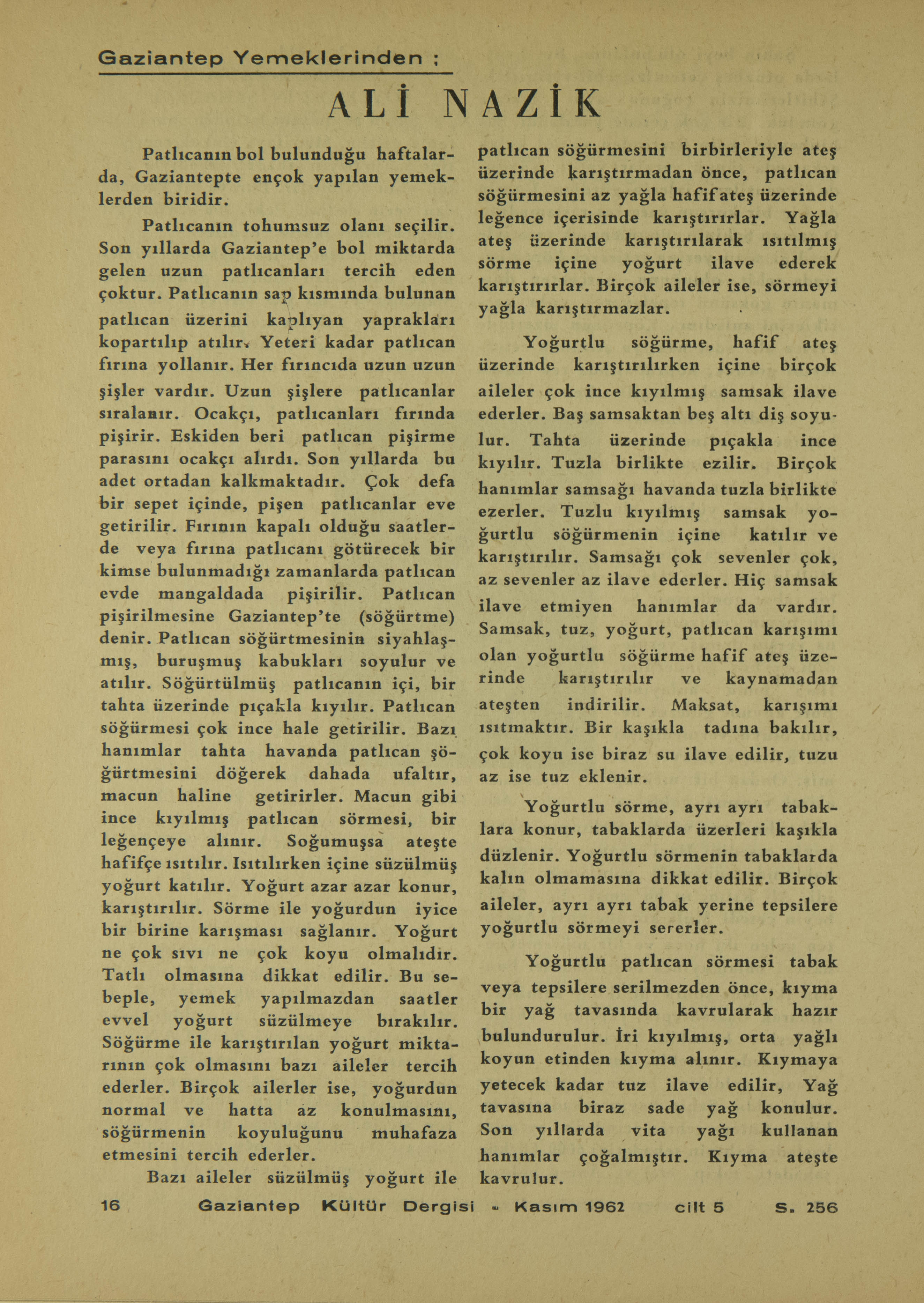 Patlıcanın bol bulunduğu haftalarda, Gaziantepte en çok yapılan yemeklerden biridir.