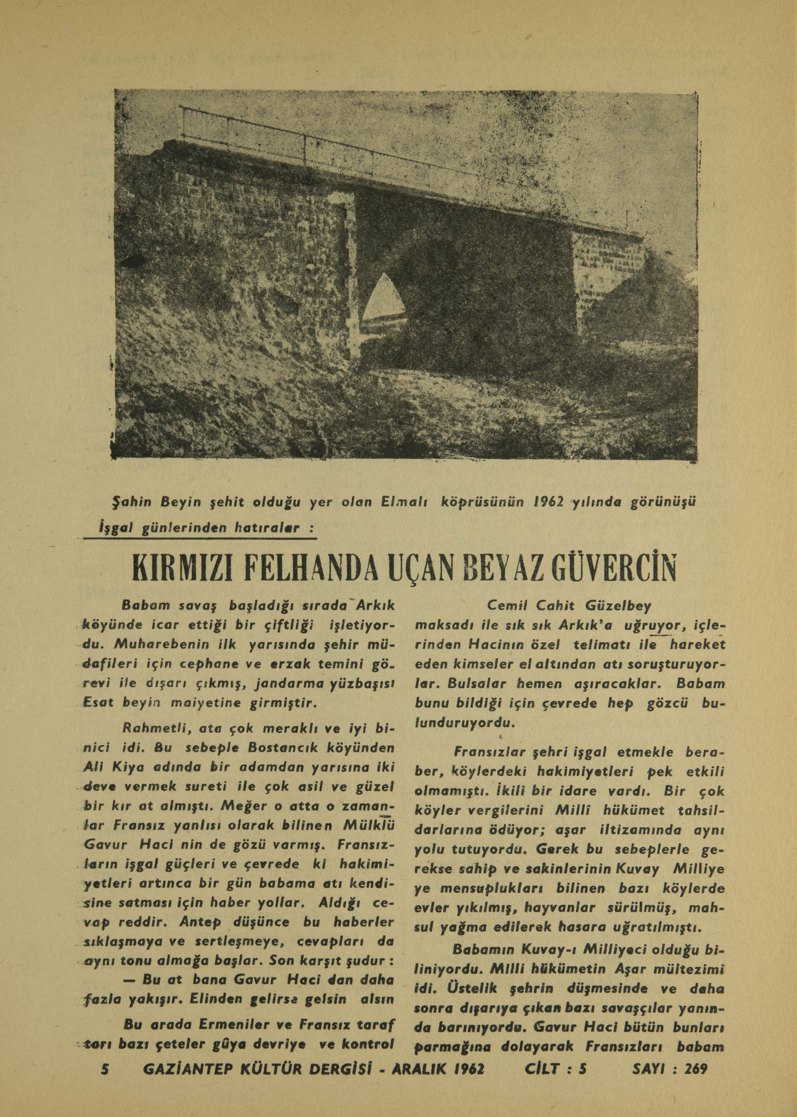 Rahmetli, ata çok meraklı ve iyi binici idi. Bu sebeple Bostancık köyünden Ali Kiya adında bir adamdan yarısına iki deve vermek sureti ile çok asil ve güzel bir kır at almıştı. Meğer o atta o zamanlar Fransız yanlısı olarak bilinen Mülklü Gavur Haci’nin de gözü varmış. Fransızların işgal güçleri ve çevrede ki hakimiyetleri artınca bir gün babama atı kendisine satması için haber yollar. Aldığı cevap reddir. Antep düşünce bu haberler sıklaşmaya ve sertleşmeye, cevapları da aynı tonu almağa başlar. Son karşıt şudur:
