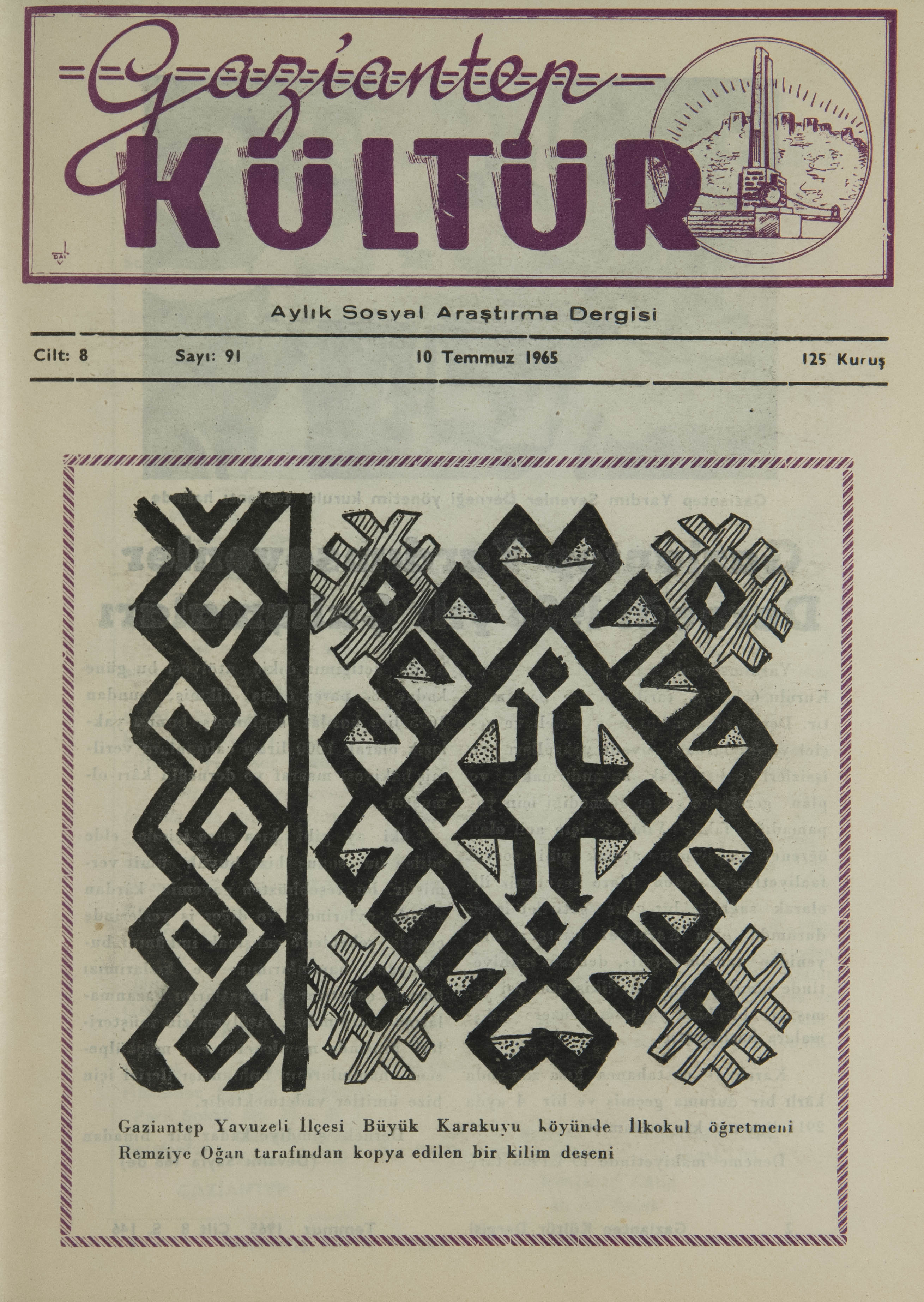 Gaziantep Yavuzeli İlçesi Büyük Karakuyu köyünde İlkokul öğretmeni Remziye Oğan tarafından kopya edilen bir kilim deseni