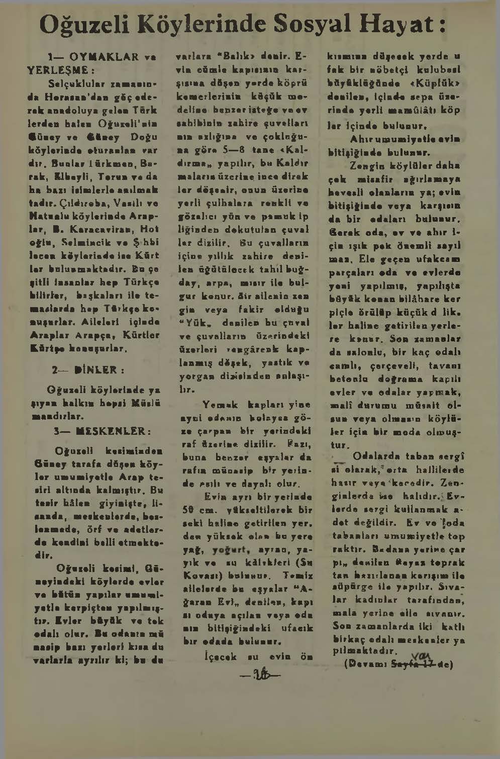 Oğuzeli kesiminden güney tarafa düşen köyler umumiyetle Arap tesiri altında kalmıştır. Bu tesir halen giyinişte, lisanda, meskenlerde, beslenmede, örf ve adetlerde kendini belli etmektedir.