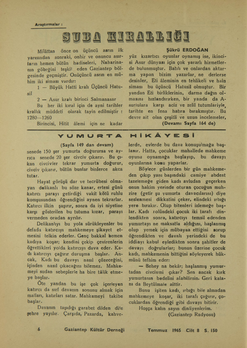 İkinci şehir: Baruata’dır, bunu meşhur Suriye’deki (Beyrut) şehri olarak anlamaya asla imkân yoktur, çünkü, Akdeniz kıyısında bir sahil şehridir. Fırat diyarı ile ilgisi yoktur. Biz bunu da Burç nahiyesi çevresindeki (Burtu) adlı köy olmak üzere düşünüyoruz. Üçüncü şehir Khun olup bu şehrin yerini meşhur höyüğü de bulunan (Körkûn) olarak tasavvura bağlarsak, her halde bir şey zayi etmiş olmayacağız. Dördüncü şehir ise (Tabhet) dir ki bunu, geçen yılki seri yazılarımız arasında, Dülük’ten çıkan paralar arsında görülen (Debet) tabiriyle aynı görüyoruz ve bu Dabet kelimesini de o zaman, güney demiryolunun güney üzerinde ve şimdi Suriye sınırı içinde kalan (Edebet) köyünün yerinde olduğunu söylemiştik. Başta bulunan (e) katmadır aslı debet’tir.