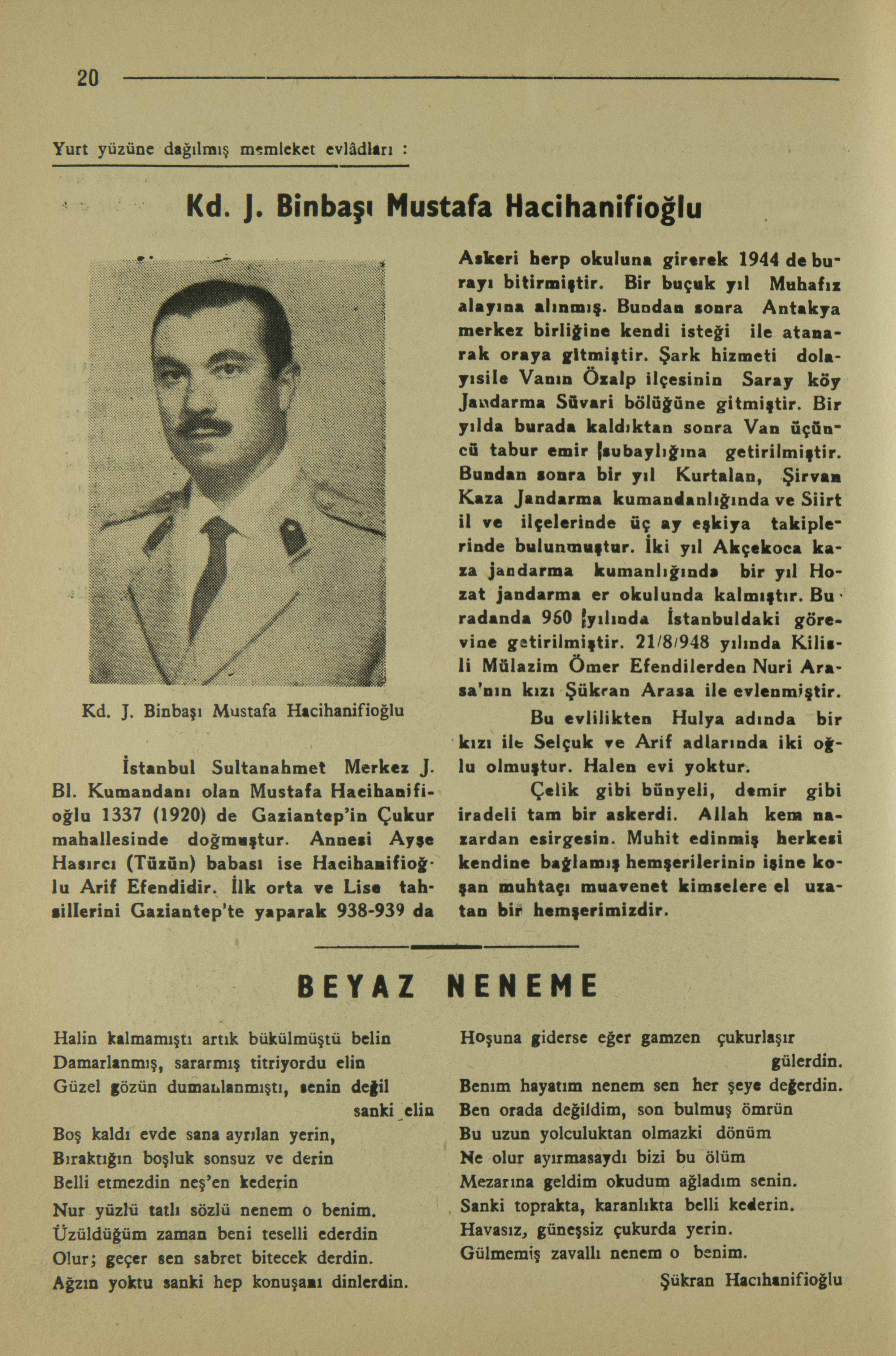 Çelik gibi bünyeli, demir gibi iradeli tam bir askerdi. Allah kem nazardan esirgesin. Muhit edinmiş herkesi kendine bağlamış hemşerilerinin işine koşan muhtacı muavenet kimselere el uzatan bir hemşerimizdir.